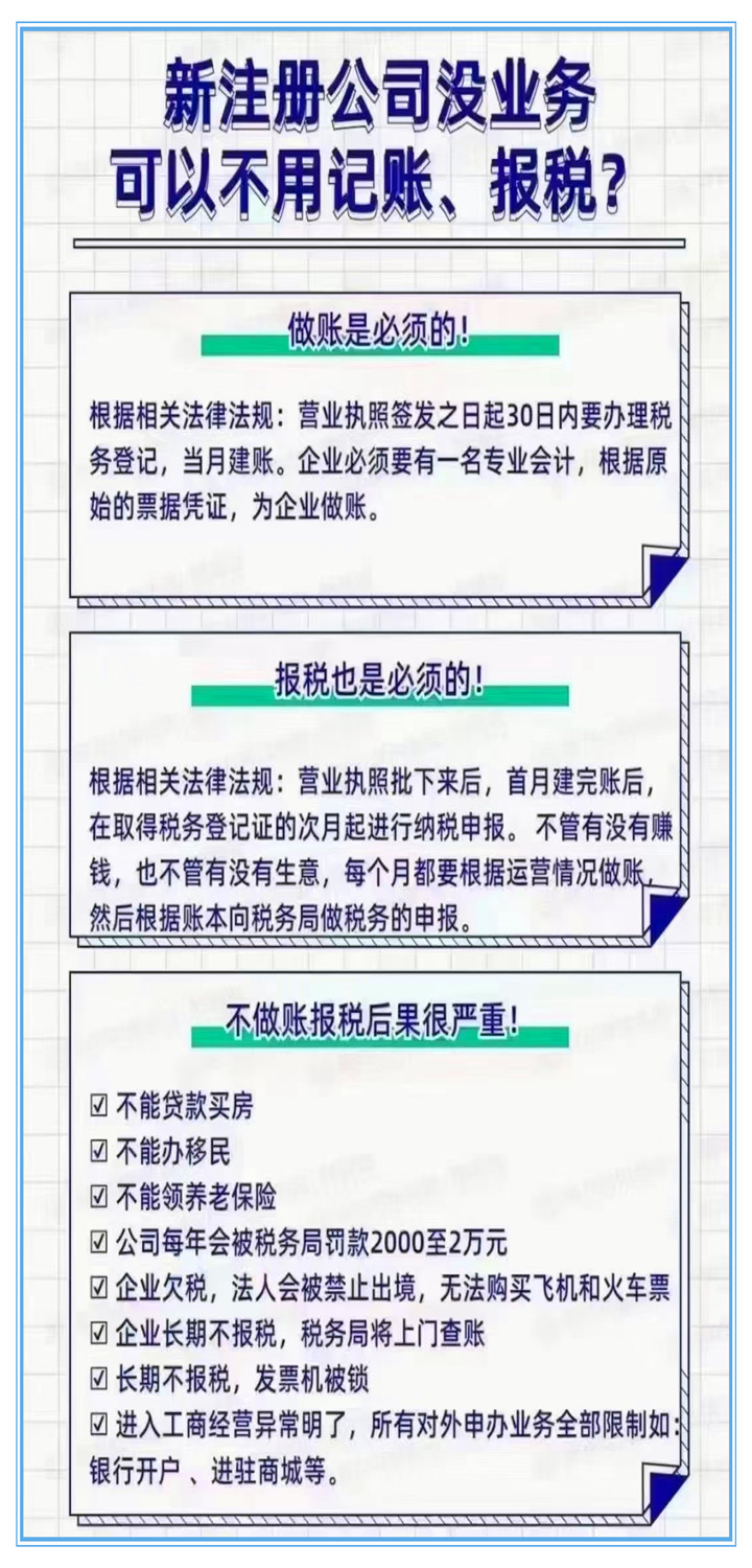 新注册公司没业务可以不用记账、报税?