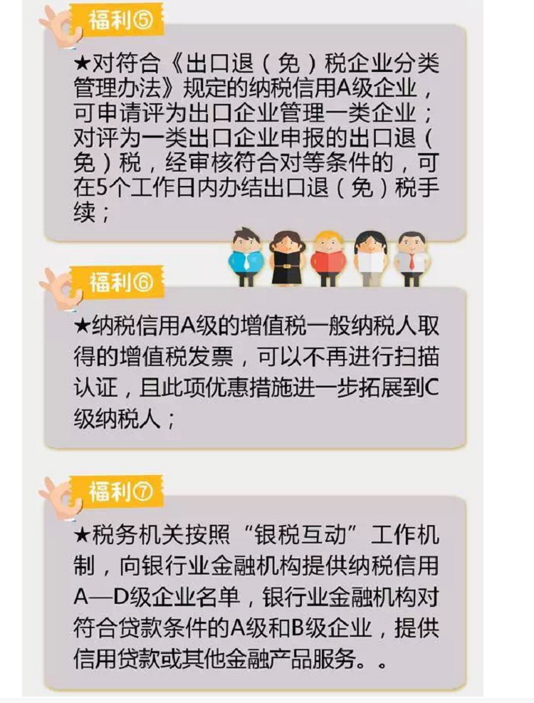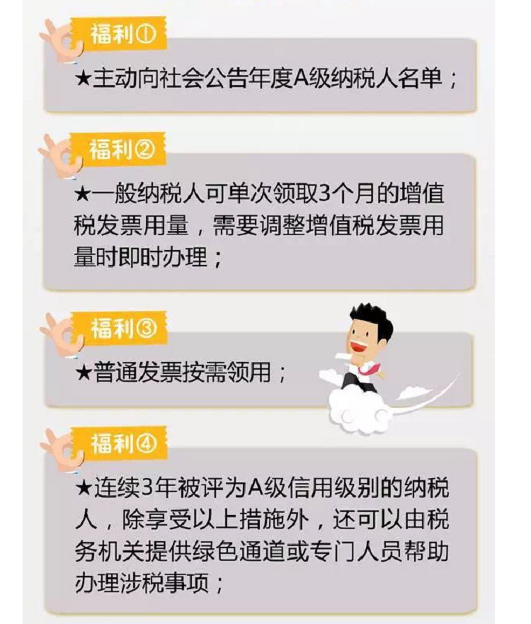 ★连续3年被评为A级信用级别的纳税人,除享受以上措施外,还可以由税务机关提供绿色通道或专门人员帮助办理涉税事项;